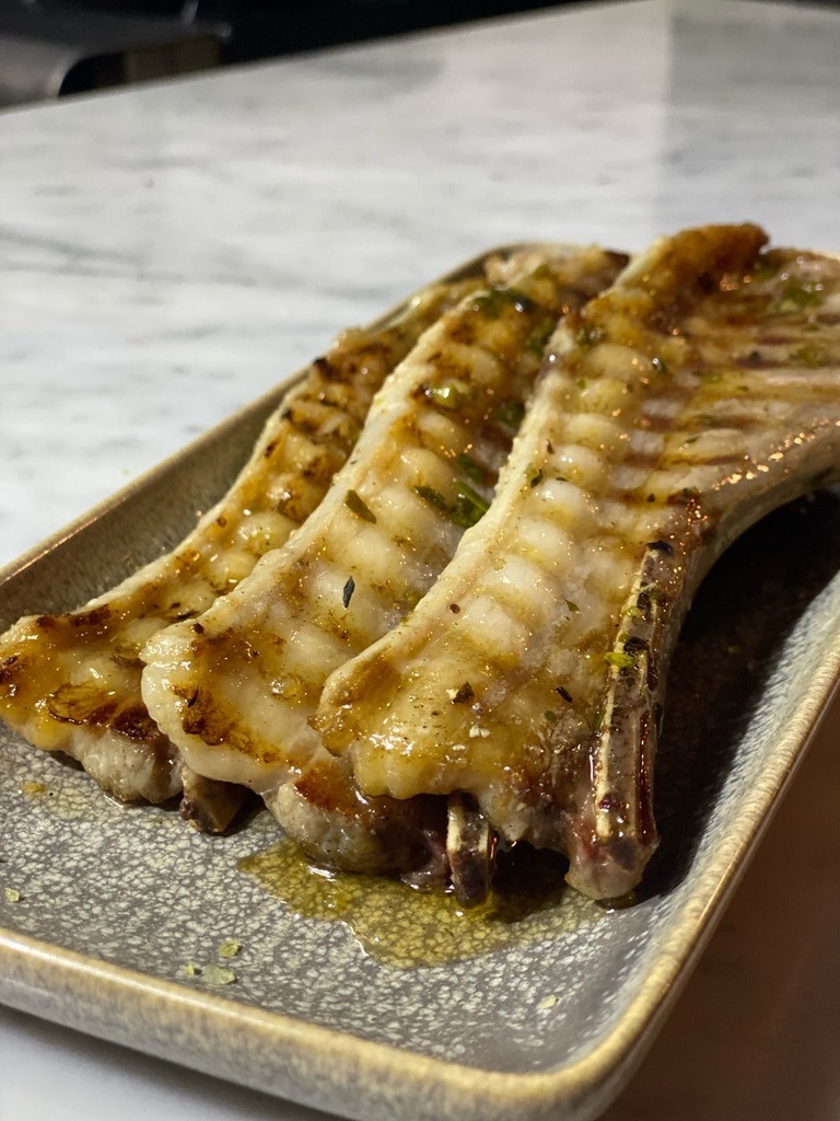 Tacos de molleja, tuétanos y rib eye prime