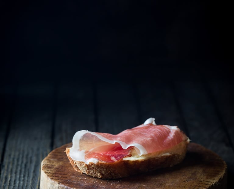 Tapas de jamón serrano kosher en pan tomate